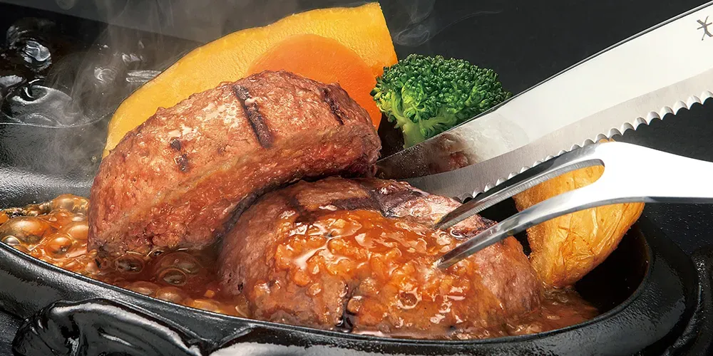 目の前で切り分けられる熱々のハンバーグはまさに絶品! -